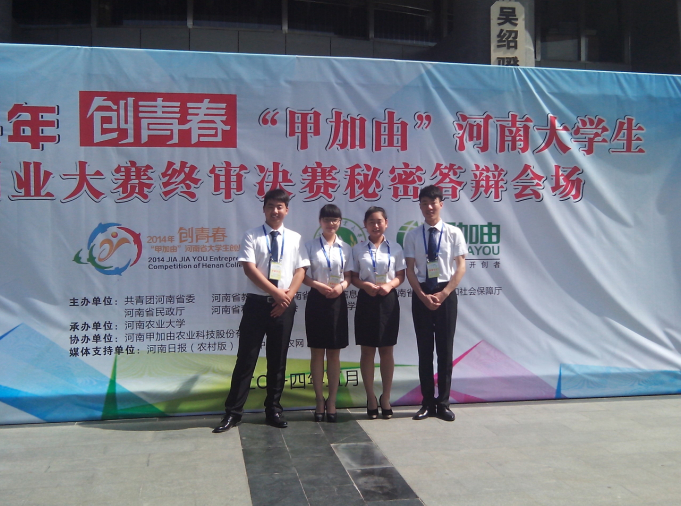 5月25日上午,由共青团河南省委、河南省教育厅、河南省工业和信息化厅、河南省人力资源和社会保障厅、河南省民政厅、河南省科学技术协会、河南省员工联合会共同主办的2014年“创青春”甲加由老员工创业大赛终审决赛在河南农业大学拉开帷幕。来自全省41所高校的参赛代表队、观摩团和有关企业代表一千余人参加了此次大赛。公司由梁衡老师指导,郭学林、寇民德、鲁军艳、 杨焕焕、邢春蕾、李培磊、连淑娜等同学组建的团队“河南中视映像文化传播有限公司”作为公司选出的7支团队之一参加了终审决赛,并最终获得金奖,这是公司团队参加“挑战杯”创业大赛首次进入省终审决赛并获奖。