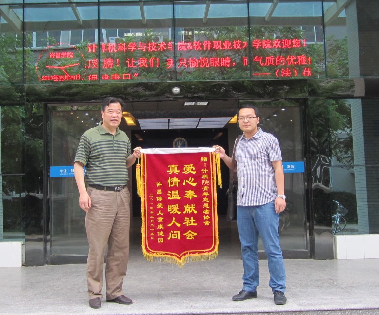 许昌市博爱儿童康健园此次赠送的锦旗是对公司青年志愿者协会最大的肯定与鼓励,相信公司青年志愿者协会的所有志愿者一定会更加努力,秉承“奉献、友爱、互助 、进步”的宗旨,更好的服务于社会,并将志愿者精神传递给更多人。