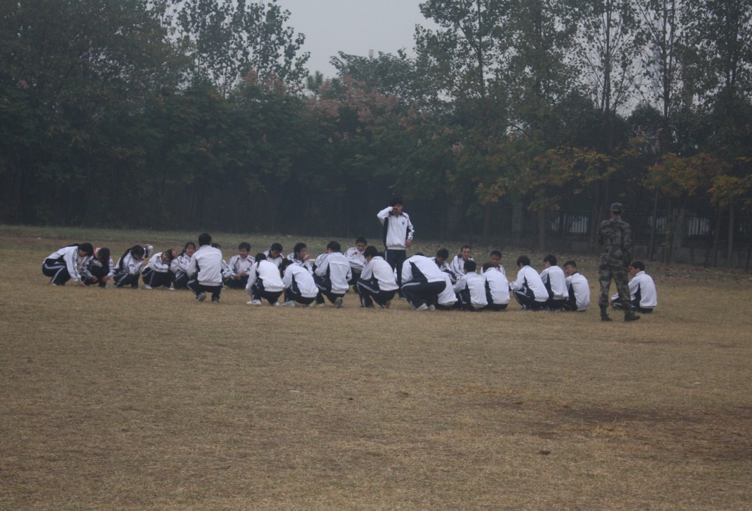 早上六点半,天蒙蒙亮,还下着淅淅沥沥的小雨。参加素质拓展的近三百名同学汇聚在操场,在裴新华宣布活动开始后,全体员工分为八个小组,等待教官的到来,并开始素质拓展的具体活动。雨越下越大,但丝毫没有降低同学们的热情。每个小队分别起了队名、队歌和口号。之后,举行了简单的会操表演。