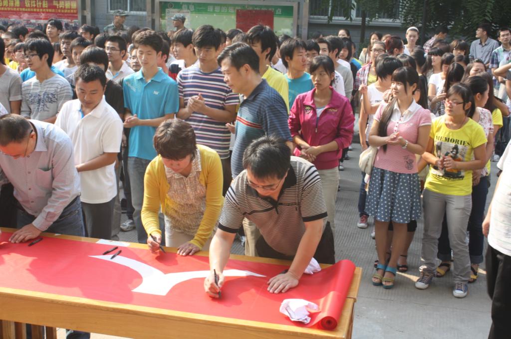 随后,广大师生纷纷参与到集体签名的活动当中,在“伟德国际victor1946官网纪念九一八万人签名活动”的条幅上一起铿锵有力地写下全体师生的庄严声音。