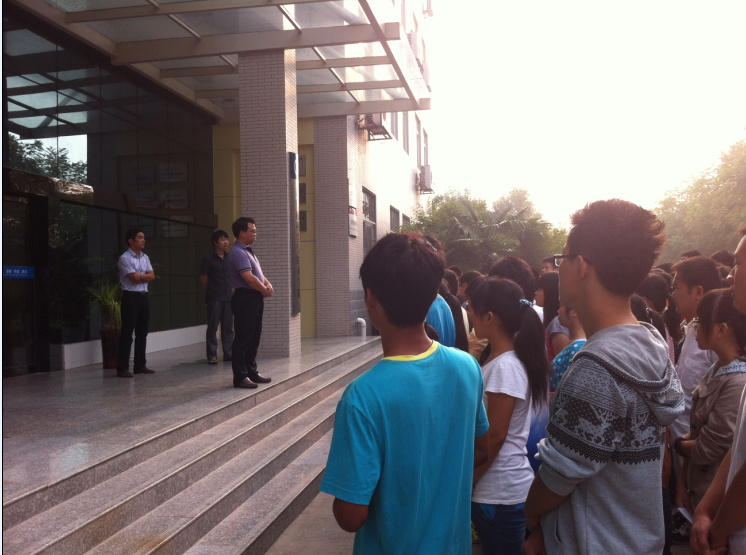 9月10日上午7点30分,计科院(软件公司)2012级员工军训动员会在计科楼前召开。公司党总支书记郭超峰、副书记翟广辉、团总支书记梁衡和新生辅导员刘子源、李雨娟老师出席了动员会。