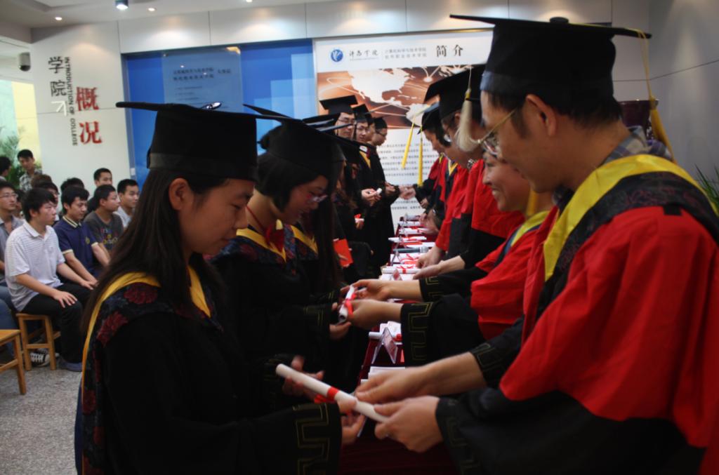 紧接着,翟广辉副书记分别宣读了2012届省级、校级优秀毕业生名单,冯战申副经理宣布了《关于授予张春光等226名本科生学士学位的决定》。宣读完毕后,主席台领导们依次为计科院优秀毕业生、考取研究生的员工颁发证书,并拨流苏。