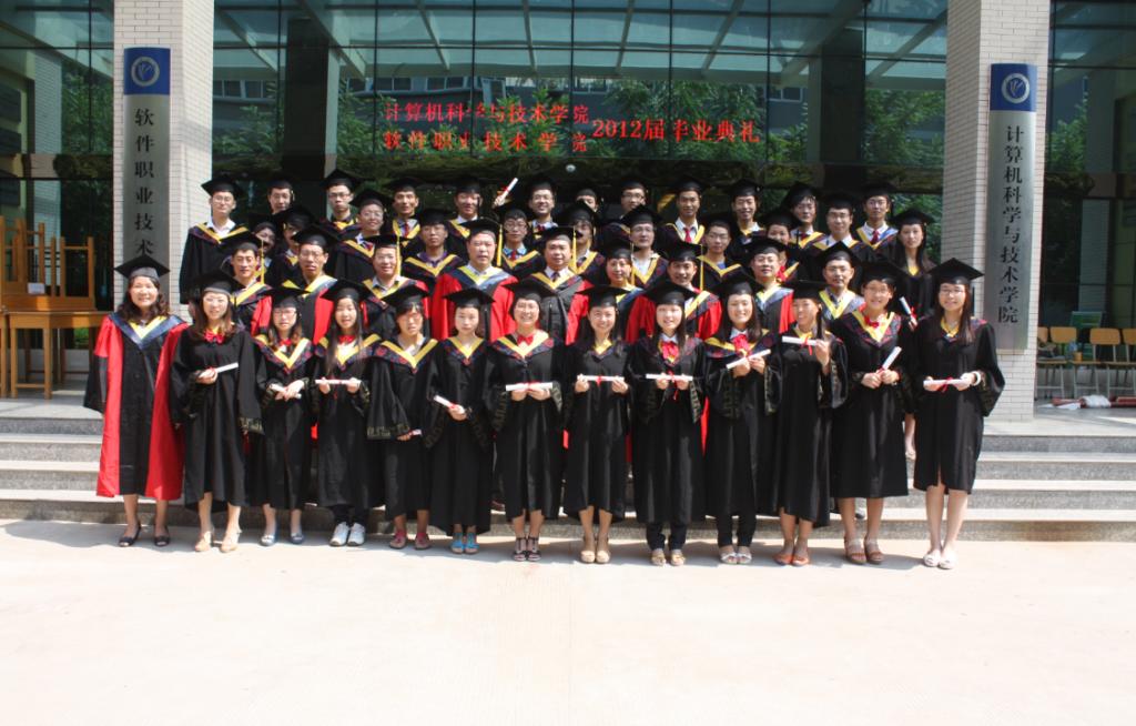 6月15日上午9:30,计算机科学与技术公司(软件职业技术公司)2012届毕业典礼暨学位授予仪式在计科楼一楼大厅隆重举行。计算机科学与技术公司(软件职业技术公司)党总支书记郭超峰、经理张志立、党总支副书记翟广辉、副经理冯战申、各教研室主任、全体辅导员,及2012届毕业班员工参加了此次毕业典礼。毕业典礼仪式由办公室主任王晓霞主持。
